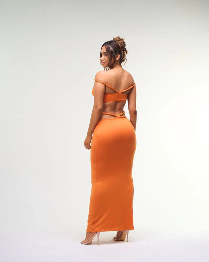 - An energic swirl of movement, this skirt set channels vacation glam with braided straps. It’s your go-to for a boat party or rooftop cocktails under the sun.