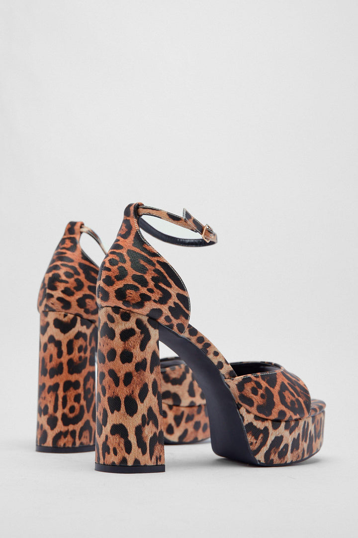 Get into it. Feel confident in our platform heels, made with high-quality faux leather fabric. They have a high chunky heel and a distinctive leopard print.